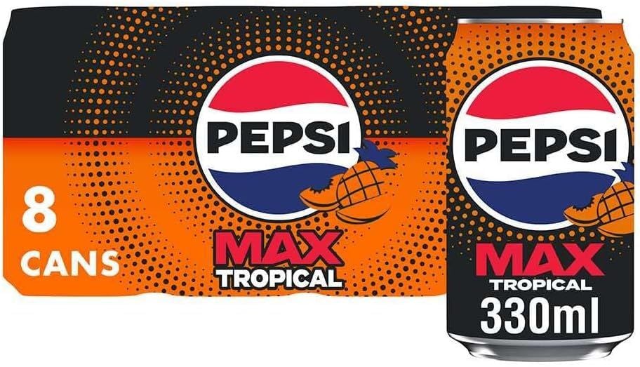 Pepsi Max Tropical, 330ml Cans (Pack of 8)