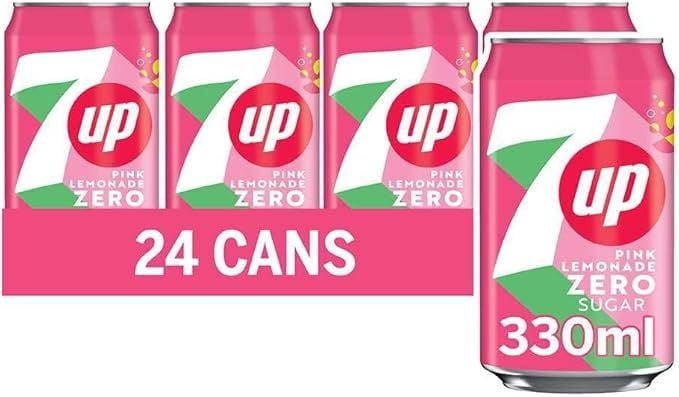 7UP Zero Pink Lemonade, 330ml can (Pack of 24)